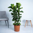 With many names including Fiddle-leaf Fig, Fiddle-leaf, Banjo Fig, and Lyre-leaf, this popular plant is winning hearts. The plant is native to western and central Africa and has one branched trunk with a semicircle-shaped canopy which is symmetrical with an unstructured outline. The leaves are mostly veined with violin-shaped leaves which are quite large and can reach 30 cm long.